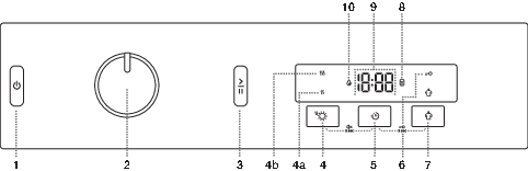 The display will be reactivated if you rotate the programme selector knob or press the (1) ON/OFF button or open the dryer door. If you do not do anything for 5 minutes after the end of the programme, the display unit will be switched off as well. Indicator light on the (3) START/PAUSE button will flash.